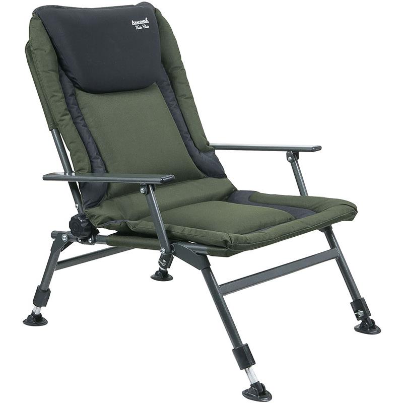 Klein en handzaam, maar toch stabiel en comfortabel. Personen tot 130 kg kunnen gemakkelijk op de stoel zitten en zich ongestoord wijden aan het karpervissen.