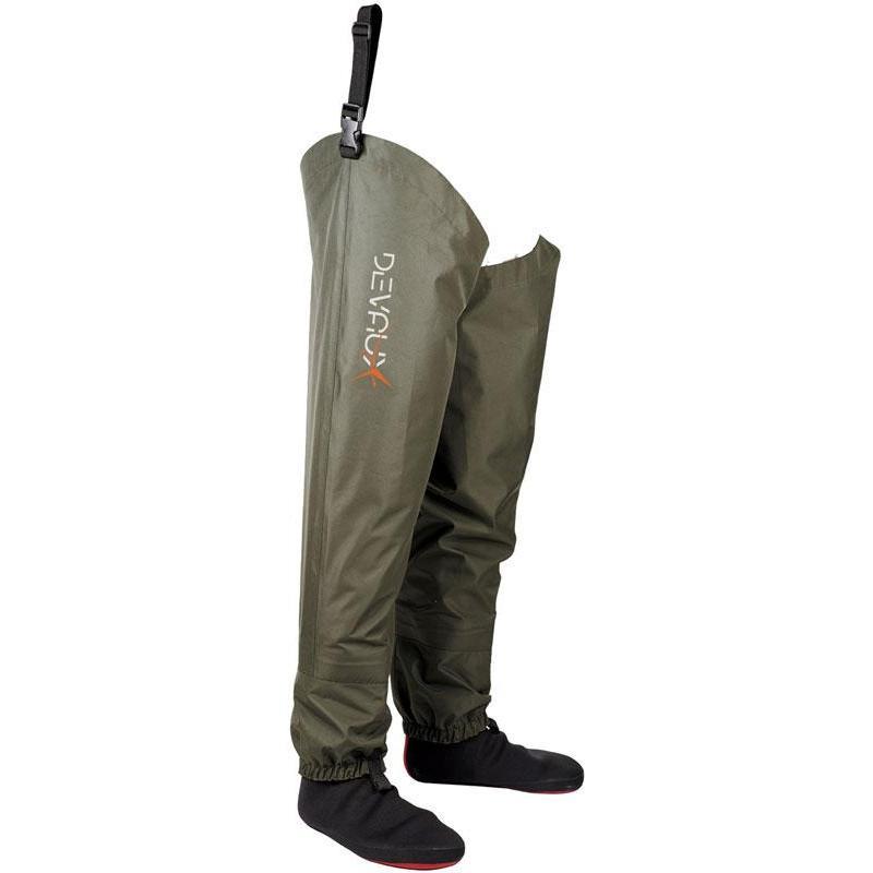 Volledig vervaardigd uit ademend materiaal HUMMIX (waterdichtheid van 12000 mm en ademend vermogen van 4000g/m2/24h), is de serie DVX100 licht, betrouwbaar, comfortabel en heeft een ongelooflijke prijs-kwaliteitverhouding. De naden zijn aan de buitenkant van de benen geplaatst om de stevigheid te vergroten en een perfecte waterdichtheid op de lange termijn te garanderen. De pasvorm is recht en modern om u optimaal comfort te bieden. Gamaschen met geïntegreerd elastiek. Versterkte neopreen sokken. Wordt geleverd in een draagtas van gaas.