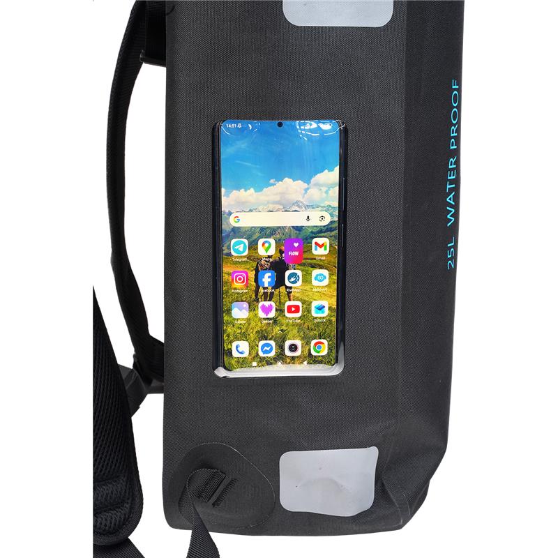 Ontworpen voor vissers die alle omstandigheden trotseren, beschermt deze robuuste, waterdichte rugzak uw materiaal effectief tegen water, zand en stof dankzij zijn roll-top sluiting. Zijvak van mesh voor drinkfles, doorzichtig touchscreenvak voor smartphone en binnenvak voor doos of laptop. Ademende ergonomische verstevigingen op rug en schouderbanden voor optimaal comfort. Polyester 600D TPU.