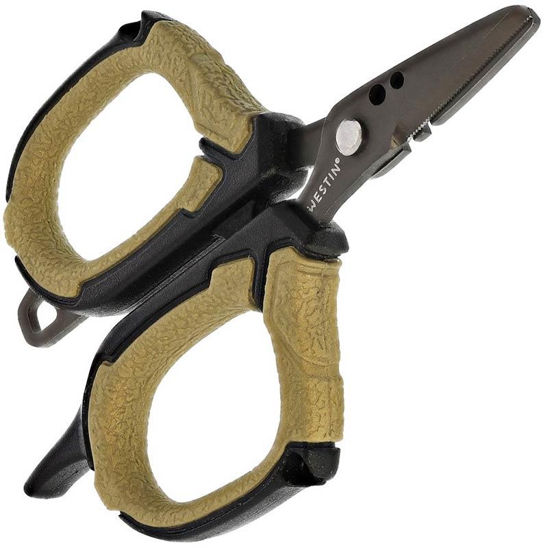 Deze compacte schaar van 7,5 centimeter is ontworpen voor veelzijdige vistaken. Voorzien van duurzame roestvrijstalen bladen met een anti-aanbak full-tang constructie, garanderen ze stevigheid en lange levensduur. De microgetande randen bieden een uitstekende grip om gevlochten lijnen, fluorocarbon en monofilament netjes door te snijden. Comfortabele handgrepen van PP+TPR zorgen voor een veilige grip. De geïntegreerde gereedschappen omvatten een oog voor een draagriem, een gereedschap om kunstaas af te stellen, een haak-inrijger en een haakgaatje dat is ontworpen om knopen aan te trekken. Een multifunctioneel gereedschap voor vissers. Wordt geleverd met een hoesje voor eenvoudig opbergen aan uw jas of broek.