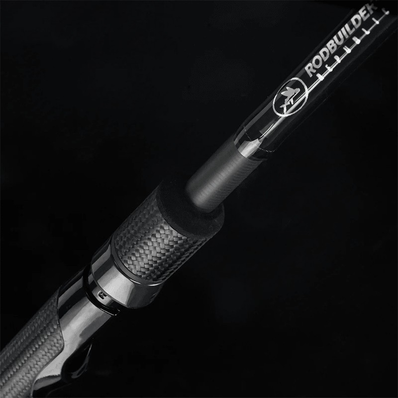 Voorzien van carbon handgreep, Fuji VSS molenhouder en Fuji Titanium Torzite geleideogen.