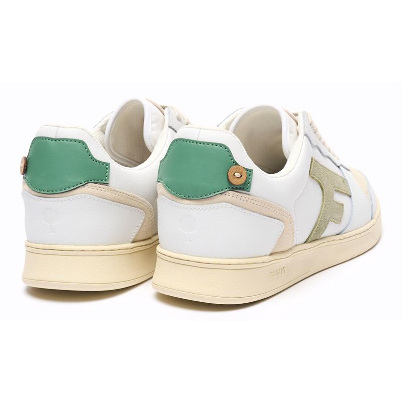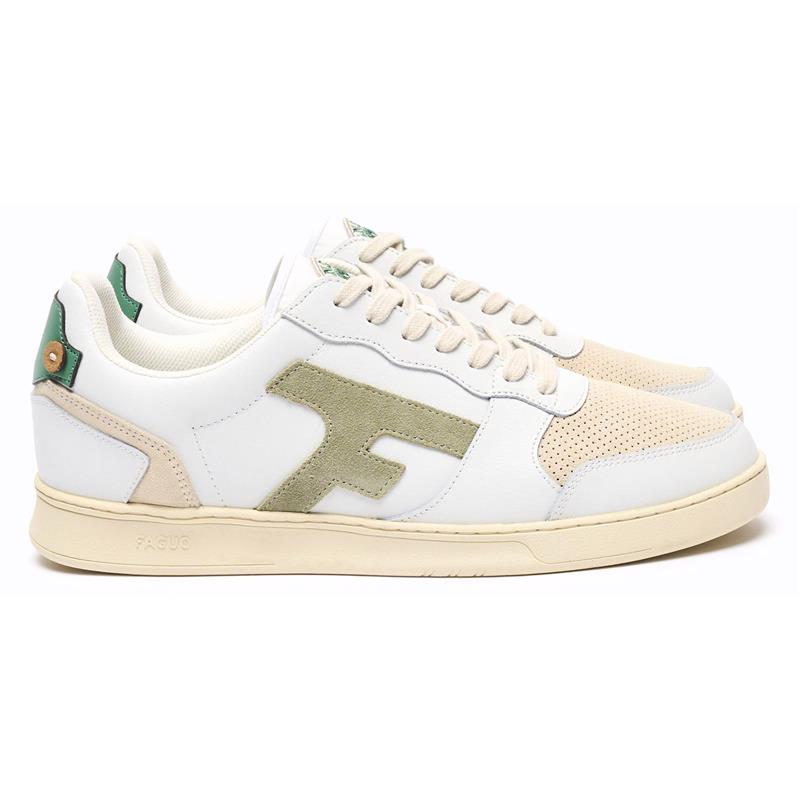 Charakterystyka : • Cholewka ze skóry • Wstawki z poliamidu w 100% z recyklingu pochodzącego z sieci rybackich • Wyściółka z poliestru z recyklingu i poliamidu z recyklingu pochodzącego z sieci rybackich • Sznurowadła z poliestru z recyklingu i bawełny • Naszywka z filcu z wyszywanymi logotypami lab Sensas • Opakowanie z recyklingu i nadające się do recyklinguOPIS :HAZEL to niska tenisówka inspirowana butami z lat 80. Jej podeszwa przyszyta do cholewki została zaprojektowana w naszym studio z myślą o optymalnej trwałości. rozpoznawalna dzięki logo F po boku, jest niezbędnym modelem FAGUO do noszenia przy każdej okazji.