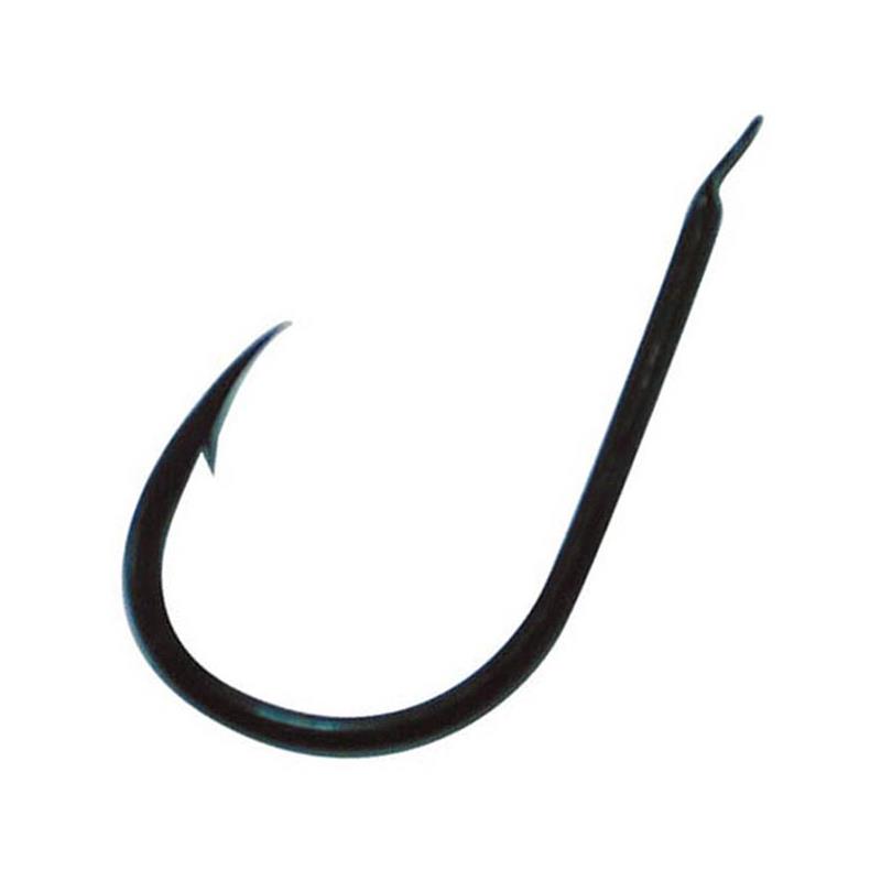 Dostępne w opakowaniu po 25 haczyków specjalnych morskich, czarnych niklowanych, z płytką, krótkim trzonkiem, zagiętym czubkiem.