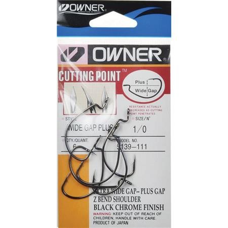 Haczyk typu wide gap (szerokie otwarcie) do wszystkich montaży texan lub carolina. Ma tę szczególną cechę, że szerokość otwarcia jest znacznie większa niż u jego odpowiedników w innych markach (Wide Gap Plus ™) Dzięki temu można używać najbardziej krępych i grubych przynęt (creatures, raki, pulchne shady itp.), zachowując jednocześnie duży zakres ruchu grota haka przy zacięciu. Zgięcie przed oczkiem lekko wpuszczone (Z-lock) zapewnia lepsze utrzymanie przynęty. Haczyk kuty z bardzo mocnego drutu (XXX Strong) do zdecydowanego wyciągania największych ryb spod roślinności. Grot cutting point. Chromowany na czarno.