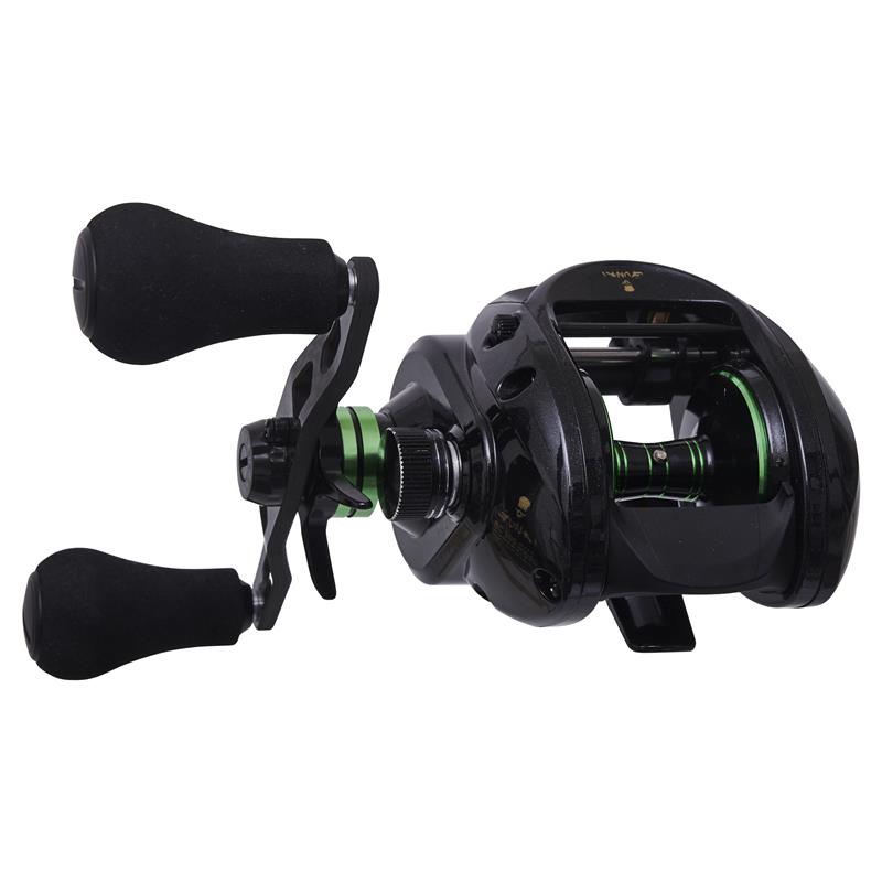 Ten kołowrotek baitcasting to model 'big bait' o konstrukcji « low profile », którego kompaktowość zapewnia doskonały chwyt. Jego przełożenie (7.3/1 dla odzysku 80cm/TMV)) zostało zaprojektowane, aby nadać Twojej przynęcie odpowiednią prędkość w zależności od stosowanej techniki: big bait, swimbait, jerks i wszystkie podejścia typu 'cranking'. Wytrzymały i mocny (korpus monoblok aluminium, hamulec wielotarczowy z podkładkami z włókna węglowego o sile 9kg). Mimo to pozostaje dość lekki jak na model swojej kategorii. Został stworzony do polowania na największe szczupaki i będzie idealnie pasował do naszych wędek CHOOTEN CUT C235XXHet C245 XXXH. Korba z włókna węglowego (po lewej) z uchwytami « suregrip » z EVA, szerokie i wygodne. Szpula dużej pojemności zaprojektowana z zaczepem pozwalającym solidnie i łatwo przymocować plecionkę. Jej pojemność jest przystosowana do przyjęcia plecionek o dużej średnicy. Zakres obciążenia: przynęty 40-180g. Pierścień « memory line » przy korbie, aby przypomnieć średnicę plecionki, która została nawinięta.