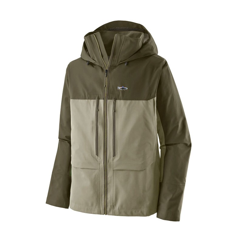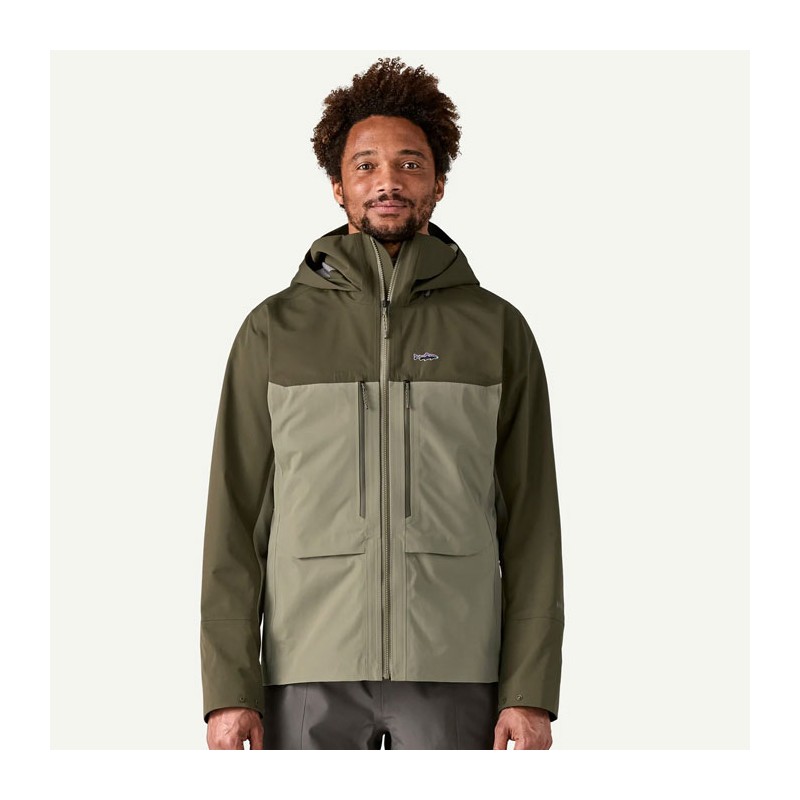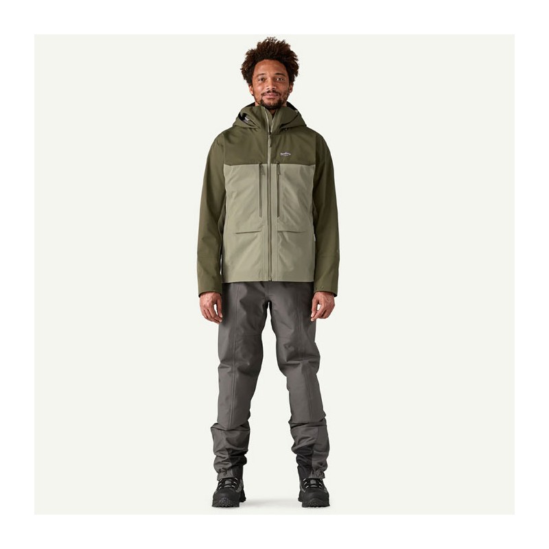 • kieszenie dwie przednie, minimalistyczne kieszenie zapinane na zamek przeznaczone na pudełka na muchy ; zapinane kieszenie na ogrzewacze dłoni umieszczone wystarczająco wysoko do brodzenia w głębokiej wodzie i wyposażone w klapę zwiększającą komfort na grzbiecie dłoni