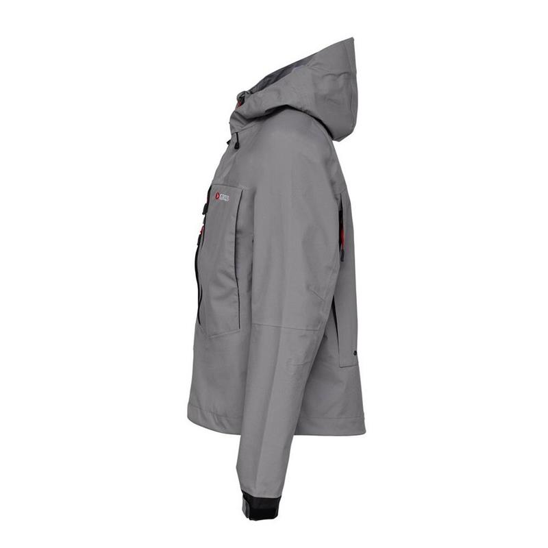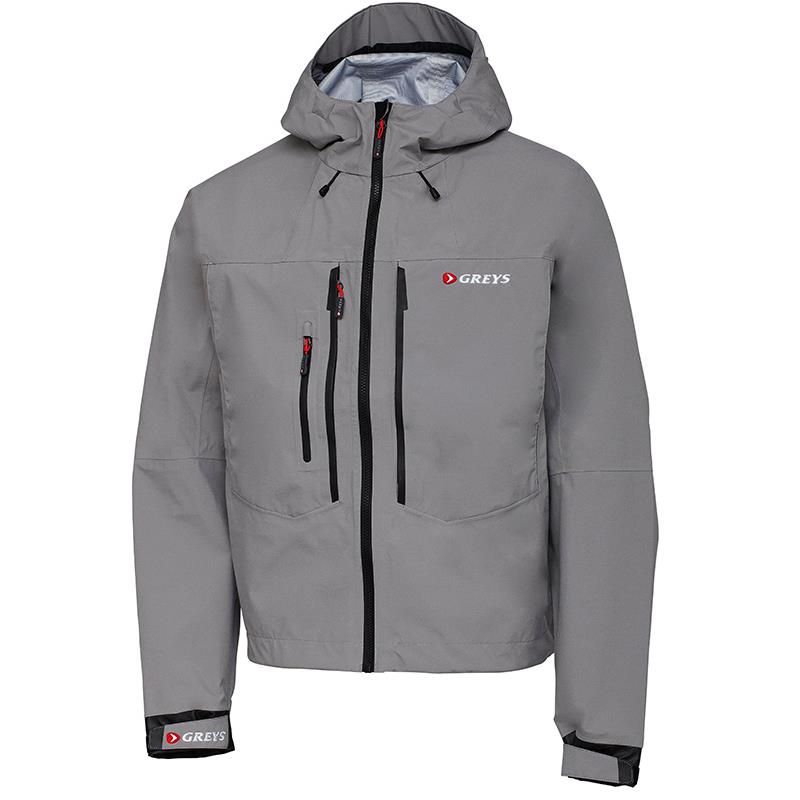 Kurtka do brodzenia Greys Tail została wykonana według zasady, że mniej może stać się więcej. Trójwarstwowa membrana i mankiety tworzą wysoce odpychający wodę materiał, który sprawia, że ta kurtka prawie nie wchłania wody. Dzięki temu kurtka wyschnie ultra-szybko i nie obciąży się wodą spływającą z góry lub rozbryzgów fal. Dwie duże kieszenie na piersi są idealne do przechowywania pudełek na muchy lub pudełek z przynętami. Małe kieszenie na piersi z wodoodpornymi zamkami błyskawicznymi są idealne na drobne przedmioty, takie jak sprzęt do przyponów. Za kieszeniami na piersi znajdują się kieszenie ogrzewające dłonie z bardzo cienką podszyciem z polaru, które ogranicza ilość wody, którą mogą wchłonąć.