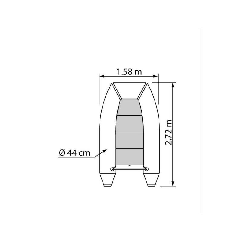 • Maksymalne obciążenie : 500 kg • Liczba komór : 3 + 1 • Siedzisko : czarne drewniane siedzisko + mocowanie siedziska : dostarczane w standardzie. • Wzmocnienie kilu : Tak • Uchwyty do holowania : 2 • Oczka do bossoirs : 4 • Uchwyty do przenoszenia : 3 (1 z przodu, 2 z tyłu) • Wyposażenie w zestawie : pas do mocowania zbiornika, torba transportowa, zestaw naprawczy, pompka, 2 wiosła. • Wymiary: 272 x 158 x 74 cm • Kolor: Szary • Średnica pływaków: 44 cm • Wysokość całkowita: 0,74 • Materiał: PVC • Model: P270KH • Liczba osób: 3,5 • Waga: 49 kg • Maksymalna moc silnika: 7,4 kW (10 CV) • Rodzaj podłogi: Pełna, drewno • Wymiary po złożeniu: 1,10 x 0,57 x 0,30 m • Maksymalne obciążenie: 500 kg