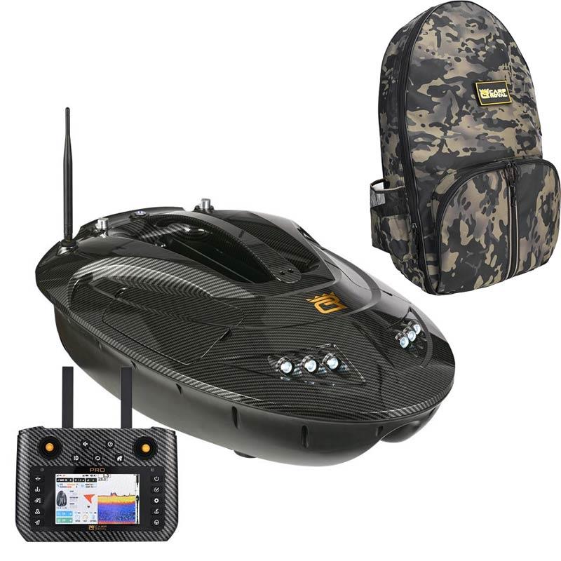 Cechy : • Pojemność zanęty: 4 kg • 240 punktów GPS na wodzie / z sześcioma różnymi obszarami, z których każdy ma 40 miejsc pamięci • Zasięg 500–900 metrów • L=679 mm B=439 mm H=258 mm • Wbudowany układ GPS • Autonomiczne prowadzenie / autopilot • Wbudowana profesjonalna echosonda kolorowa z sondą do 80 m głębokości wody • Elektroniczny kompas • Wbudowany barometr • Wyświetlanie temperatury • Sterowane zasobniki na zanętę • Patentowane sprzęgi wyzwalające do montażu na haku • Wyjmowana osłona przed roślinnością dla większej mocy silników • Łatwe przejścia nad grążelami i ławicami roślin wodnych • Mocny system oświetlenia dla lepszej widoczności w nocy • Działanie systemu bez awarii w przypadku utraty sygnału / powrót na ląd • Stabilna pozycja w wodzie dzięki uproszczonej konstrukcji • Czas pracy baterii przy maksymalnej prędkości do 4–6 godzin z akumulatorami litowo-jonowymi. • W zestawie pilot