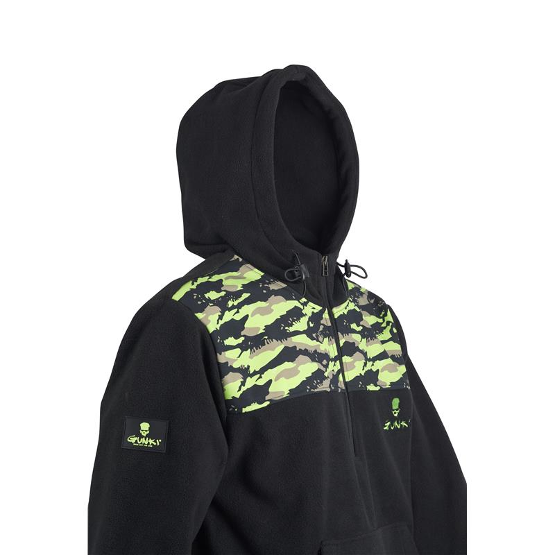 Bluza z kapturem GUNKI, wykonana z gęstego materiału 100% poliester (420g/m²), zapewniającego optymalną ochronę przed zimnem. Jej właściwości mechaniczne, dzięki obecności oddychającej membrany przeciwwiatrowej z poliuretanu, czynią z tej bluzy skuteczną barierę termiczną przed zimnem i wiatrem. Luźny krój sprzyjający swobodzie ruchów. Must-have na chłodne i wietrzne dni! Kieszeń kangurka zapinana na zamek. Sznurki ściągające do regulacji otwarcia kaptura.