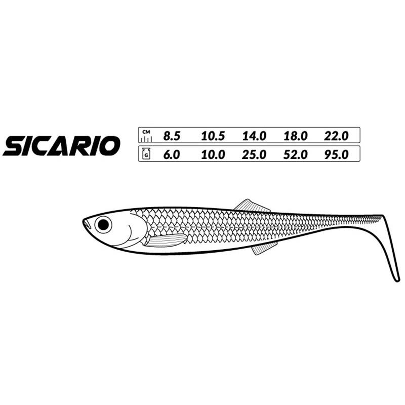 Jego realistyczny wygląd, intensywne ruchy ogona i przezroczyste wykończenie sprawiają, że miękka przynęta Sicario jest idealna do połowu różnych gatunków ryb drapieżnych. Najmniejsze rozmiary kuszą okonia i sandacza, największe są idealną bronią na szczupaka.