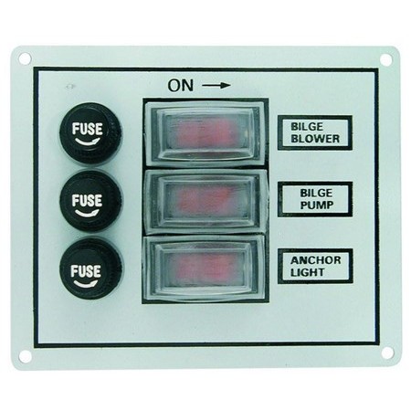 Panel z satynowanego aluminium : - 3 przełączniki - czerwony plastik podświetlany - 3 uchwyty do bezpieczników szklanych 6.3 x 30 / 32 mm - 3 tabliczki opisowe - 32 etykiety w języku francuskim - Szer. 117 mm + Wys. 97 mm - Wstępnie okablowane i izolowane końcówki - Etykiety opisowe w języku francuskim w zestawie - Dostarczone ze śrubami ze stali nierdzewnej