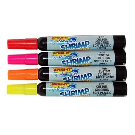 4 Pisaki do miękkich przynęt o zapachu krewetki SPIKE-IT. Personalizuj swoje przynęty do woli! Zestaw 4 niezmywalnych pisaków o zapachu krewetki: czerwony, żółty, różowy i pomarańczowy.