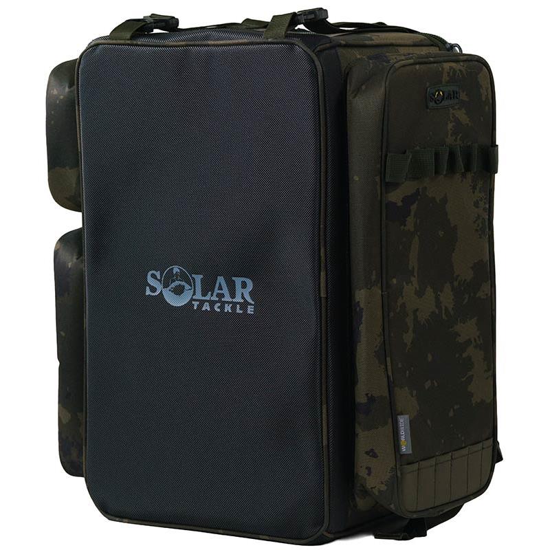 • Wykonany z tkaniny Worldwide camo 600D z powłoką PU • Wyściełane tylne podparcie lędźwiowe i pikowane szelki dla optymalnego komfortu • Zewnętrzne uchwyty na paliki (banksticks) • Trwała i wodoodporna podstawa z PVC • 1 duża główna komora i 3 zewnętrzne kieszenie • Podwójne pasy cargo zapewniają dodatkowe miejsce do przechowywania zewnętrznego • Sztywne ścianki zapewniające maksymalną ochronę sprzętu • Wymiary głównej komory (cm) : 46 × 28 × 22 • Wymiary całkowite (cm) : 50 × 42 × 25 • Pojemność głównej komory : 30 litrów