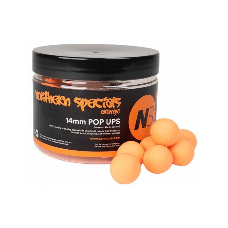 właściwości northern special orange pop ups : • dostępne w wersji standardowej 12mm, 14mm i 18mm • wersja extra pływająca + 13-14mm przeznaczona do chod, ronnie i hinged stiff rigs. • trwała powłoka zapewnia stałą pływalność przez ponad 24 godzin. • zaprojektowane do stosowania samodzielnie lub na boilies lub na zanętach sypkich. • jaskrawy pomarańczowy kolor zapewniający wyjątkowy efekt wizualny • zawiera wysokie stężenie naszego aromatu ns1 cytrusowego, o intensywnie słodkim aromacie. • mieszanka ccm pop up maksymalizuje uwalnianie aromatu i atraktantu • idealna tekstura do oblepiania przy użyciu dopasowanego « hookbait booster ». • wybierane i używane przez najlepszych karpiarzy na całym świecie.