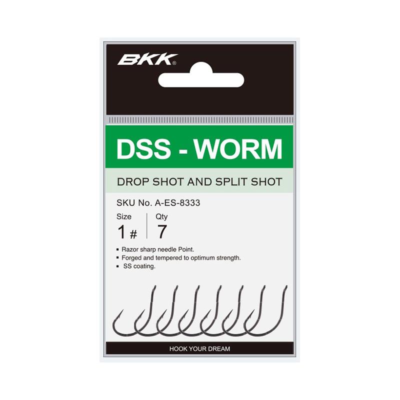 BKK DSS-Worm to najlepszy haczyk do szerokiego zakresu technik «light», takich jak Dropsot i Split Shot. Cechy obejmują ostrą jak brzytwa końcówkę zapewniającą najlepszy stosunek zacięcia/penetracji, kuty trzon dla zwiększonej wytrzymałości oraz powłokę SS o bardzo gładkiej powierzchni dla płynnego przebicia