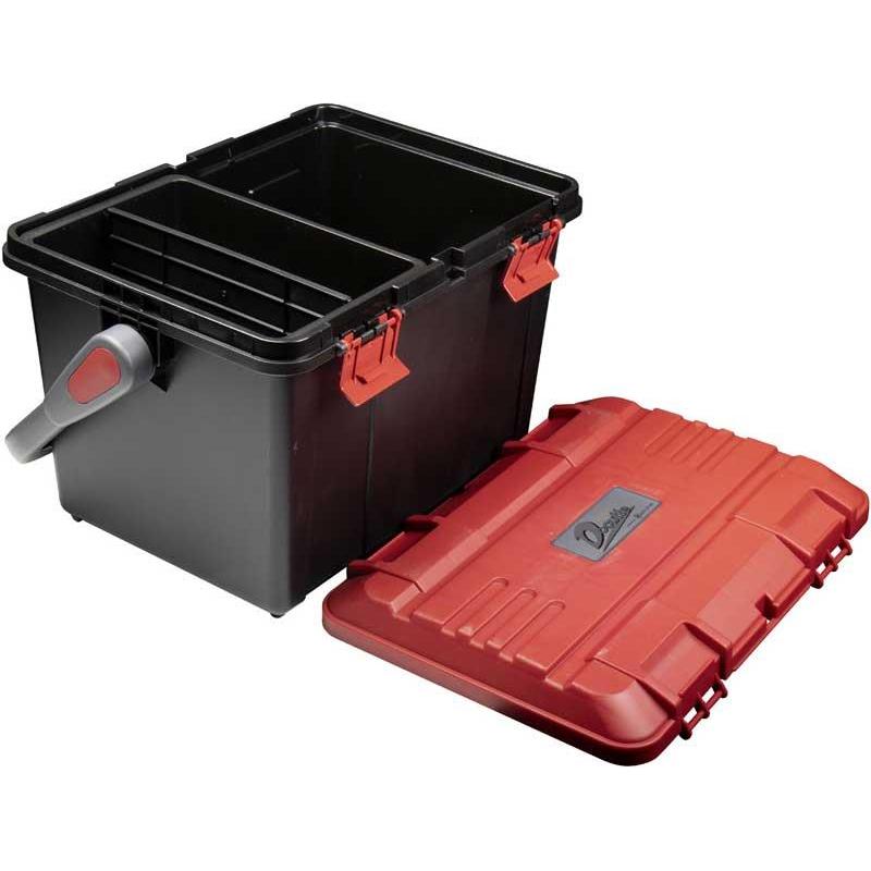 Wzmocniona skrzynia wędkarska z składanym uchwytem transportowym. Możliwość dwustronnego otwierania, z lewej lub z prawej strony. Duża pojemność umożliwia przewożenie wielu pudełek wędkarskich. Dostarczana z dwukomorowym wkładem.