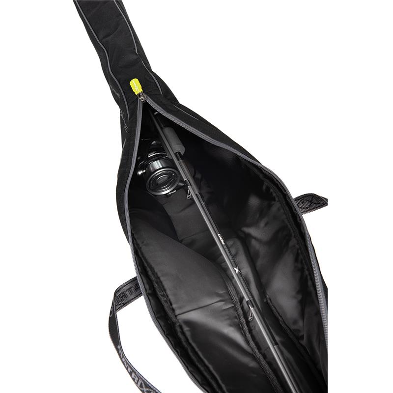 • Pokrowiec z tkaniny z wyściełaną podszewką zapewniającą skuteczną ochronę. • Pokrowiec umożliwiający transport wędki już zmontowanej, idealny na krótkie sesje lub gdy konieczna jest szybka zmiana taktyki. • Duże otwarcie na zamek błyskawiczny umożliwiające łatwy dostęp do zawartości. • Solidne uchwyty transportowe.