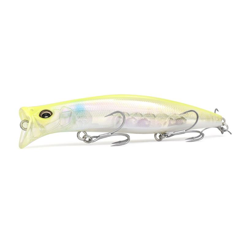 Kirinji 120 został zaprojektowany, aby przemieszczać jeszcze więcej wody i oferować zdobycz o większych rozmiarach dla większości drapieżników. Długość jego korpusu pozwala zwielokrotnić efekty technologii charakterystycznych dla serii Kirinji, zachowując jednocześnie maksymalną głębokość pływania 10cm pod powierzchnią. Jego hydrodynamiczna, wklęsła główka ma wydrążenia, które przepuszczają wodę, tworząc bardzo wyraźne ruchy wobbling i rolling bez nadmiernego obciążania wędki. Mechanizm przepływu wody generuje dzięki temu strugi wody powiązane z tworzeniem się pęcherzyków, które z daleka przyciągają czatujące drapieżniki.