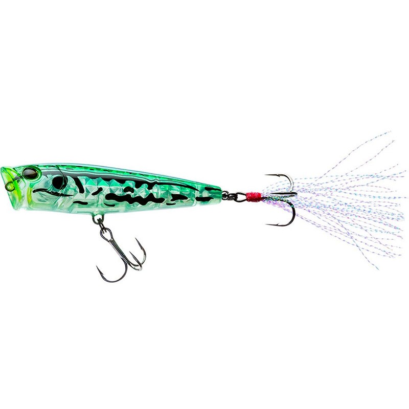 • Popper • Technologia Prism Scale • Pływanie Pop & Stop / Walking the dog • Ultra realistyczny ! • Korpus z ABS, bardzo wytrzymały • Haczyki potrójne, okrągłe, wykończenie black nickel, japońska jakość • Pasma holograficznych tinseli w ogonie