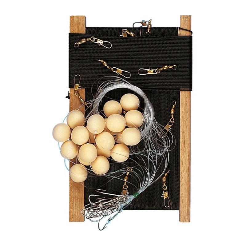 Palangra 50m zamontowana na plioirze. Korpus plecionki : 150/100-20 przypony zamontowane z krętlikami antyskręceniowymi. Haczyki INOX 3/0 wyposażone w pływak "APPAFLOAT", który chroni je przed krabami i jednocześnie uwalnia ekstrakt z krewetki przez kilka godzin, jeśli nasączysz je atraktantem typu Flash Attack.