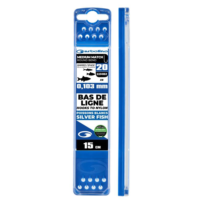 Te przypony o długości 15 cm są wyposażone w haczyki o zaokrąglonym kształcie i z mikrozadziorami. idealne do połowów białych ryb takich jak płocie. liny lub leszcze. Ich wytrzymałość i konstrukcja sprawiają, że są doskonałe do połowów w rzece lub w stawie.