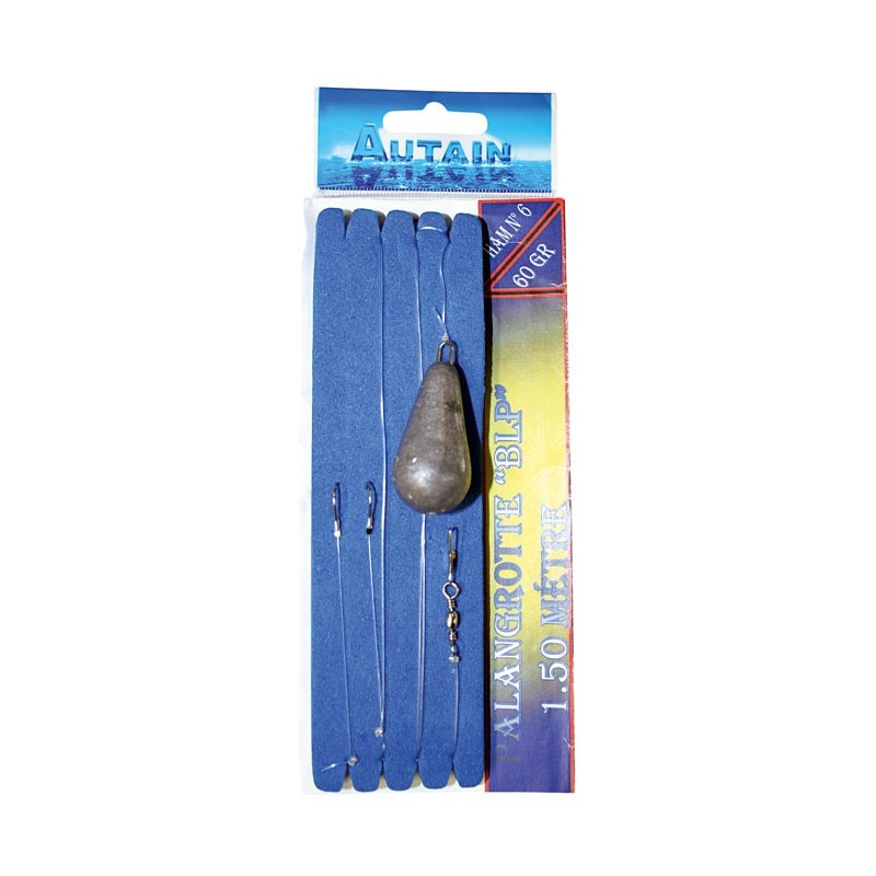 Przypon 1.50 m, z ołowiem. 2 różne rozmiary haczyków. Bardzo ceniony przez wędkarzy śródziemnomorskich.