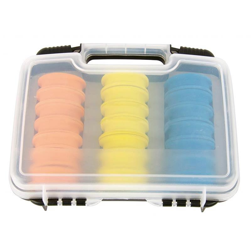 • Pudełko składające się z 24 okrągłych plioirs z gęstej pianki EVA o średnicy 65mm. • Do przechowywania i trzymania pod ręką wszystkich gotowych do użycia montaży.