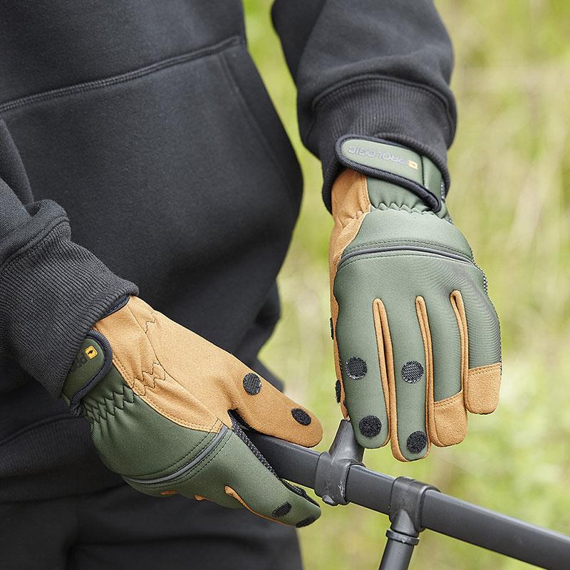 Utrzymaj ręce w cieple, zachowując jednocześnie dużą zręczność dzięki tym rękawicom z elastycznego neoprenu, cienkim, ale ciepłym, idealnym do szerokiego zakresu zastosowań przy połowie karpia. Dłoń i wewnętrzna część kciuka są pokryte gumowanym materiałem dla lepszego chwytu. Palce mają również dodatkowe punkty antypoślizgowe. Zamsz między palcami i na kciuku zapewnia maksymalną trwałość. Końcówki palca wskazującego, środkowego i kciuka są składane, aby ułatwić wiązanie węzłów, przygotowywanie montażów lub dipów.