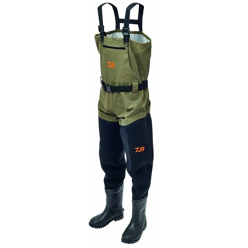 Ten oddychający i wszechstronny wader wysokiej jakości, wykonany z tkaniny neoprenowej Cr 5 mm, został zaprojektowany zarówno do wędkowania w ruchu, jak i w pozycji siedzącej. Regulowane szelki zapewniają dużą swobodę ruchów, a materiał neoprenowy chroni przed zimną wodą. Buty wykonane są z wysokiej jakości gumy, a kieszeń brzuszna wyposażona jest w wodoodporny zamek błyskawiczny. Pas z klipsem umożliwia szybkie i dopasowane zaciśnięcie w talii.