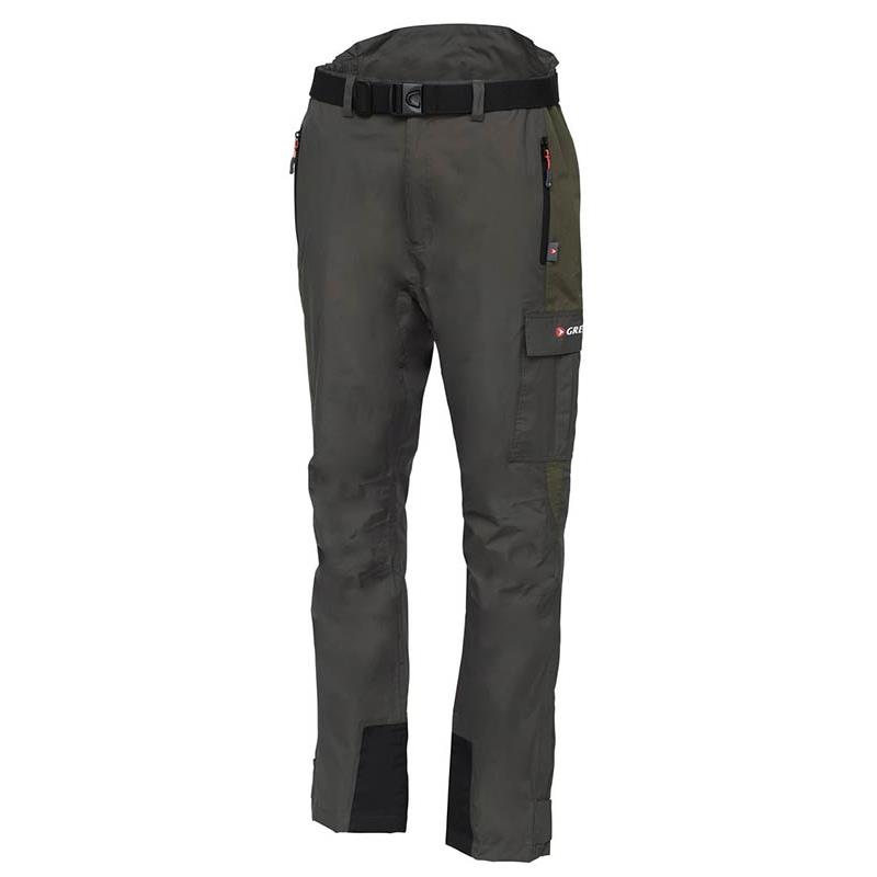 Spodnie Greys Fin mają dodatkową warstwę, która idealnie chroni przed warunkami pogodowymi. Posiadają podwyższony tył, który chroni przed wiatrem i deszczem, dwie pionowe kieszenie z wodoodpornymi zamkami błyskawicznymi oraz dużą kieszeń na udzie. Na krytycznych punktach naprężeń dodano specjalne wzmocnienie, aby wydłużyć ogólną trwałość, a regulowany elastyczny pas zapewnia wygodne dopasowanie.