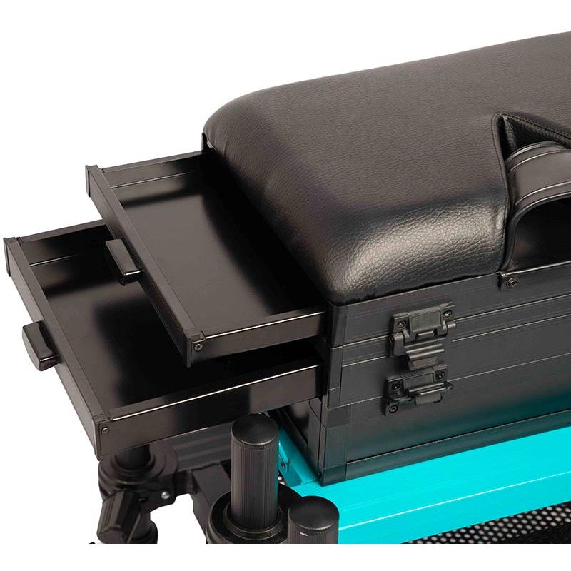 CX36 to kompaktowe i stabilne siedzisko zawodnicze, zamontowane na sześciu regulowanych nogach o średnicy 36 mm. Wyposażone w boczne szuflady, gwintowane elementy na nogach, uchwyt na kosz do przetrzymywania ryb (bourriche), poziomicę oraz centralny system mocowania z tyłu ramy na dodatkowy blat.
