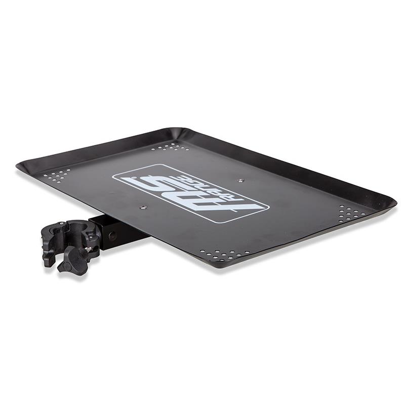Bardzo przydatne jest posiadanie możliwości przechowywania podczas wędkowania, i to właśnie oferujemy dzięki stolikowi.Add on Table. Mały stolik pomocniczy można przymocować za pomocą składanych wsporników.wspornik po boku, na przykład na nodze krzesła.o średnicy 20 mm lub, po zdjęciu adaptera, o średnicy 20 mm.25 mm może być zamocowany.