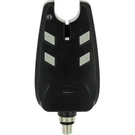 Cechy : • Sygnalizator brań do połowu karpi • 1 niebieska dioda LED • Gniazdo jack • Działa na 1 baterię 6LR61 - 9 V (nie dołączona) • 4 przyciski cyfrowe - T = Ton - V = Głośność - S = Czułość - Przycisk ON/OFF