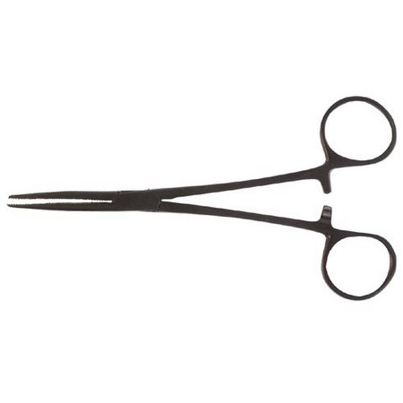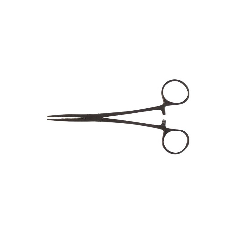 Czarne szczypce typu forceps, zakrzywione i antyrefleksyjne.
