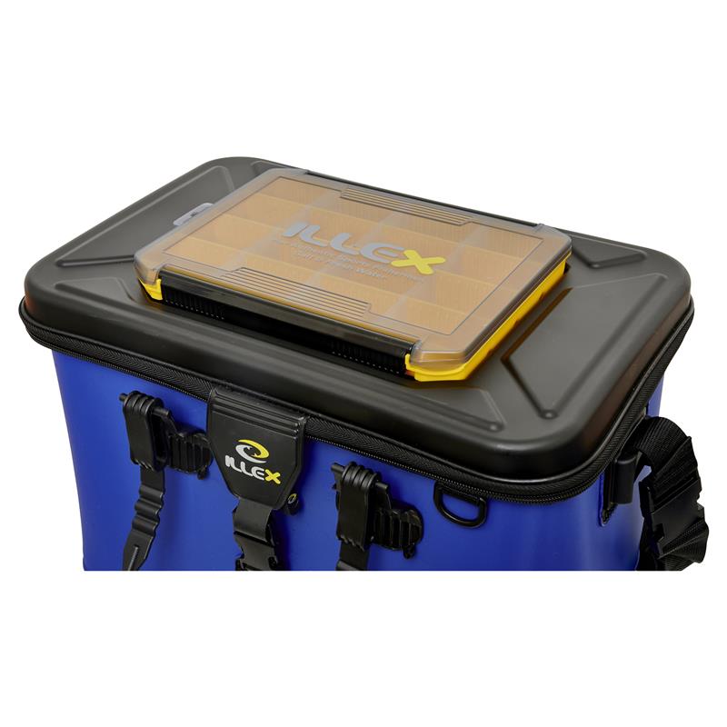 • Wodoszczelna, sztywna torba 100% niegnijąca z tkaniny EVA 1.5mm • Sztywna pokrywa do przykrycia krawędzi głównej komory, aby lepiej chronić jej zawartość przed bryzgami • Oryginalna pokrywa ILLEX z wgłębieniem do przyjęcia i ustabilizowania pudełka ILLEX TACKLE BOX 255, ILLEX SAFE BAG SLIM S lub deski do krojenia. Posiada dużą wewnętrzną kieszeń na zamek z siatką powlekaną gumą, aby przechować szpule z fluorocarbonem, szczypce lub inne niezbędne narzędzia do wędkowania. • Zamknięcie sztywnej pokrywy za pomocą bocznych zatrzasków • Wyposażony w pierścień D • Regulowany pasek na ramię • Wzmocnione uchwyty transportowe • Podkładki antypoślizgowe na spodzie • Dimensions 40x26x28cm • Pojemność : 29 litres • Kolor : Bleu ou Jaune • Dostarczane bez SAFE BAG ani pudełka ILLEX TACKLE BOX 255