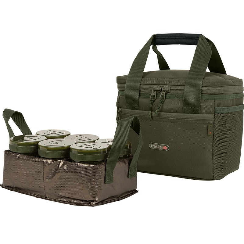Torba jest dostarczana z sześcioma wodoszczelnymi pojemnikami umieszczonymi wewnątrz wyjmowanej, izolowanej tacki, co pozwala przechowywać przynęty lub dodatkowe akcesoria w głównej komorze, która jest podszyta naszą wysokiej gęstości wyściółką termiczną Chilla oraz posiada wyjmowane wnętrze z PVC, które można łatwo wyczyścić.