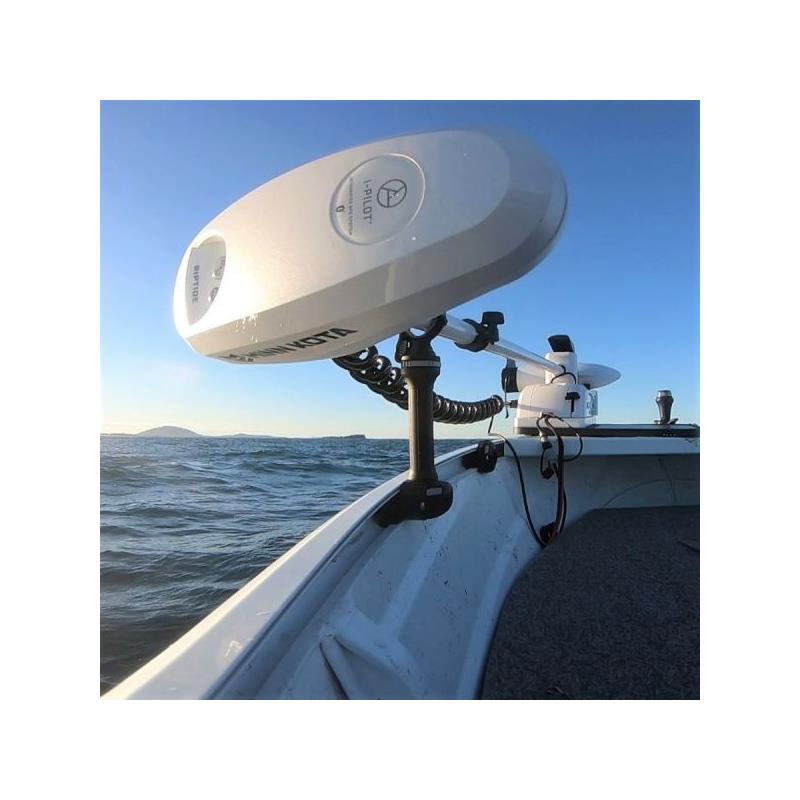 stałe przedłużenie daje odpowiednią wysokość względem pokładu, a g-hold zapewnia pewne trzymanie wału silnika trollingowego. wysokość całkowita poza pokładem 160 mm (6,3 po)