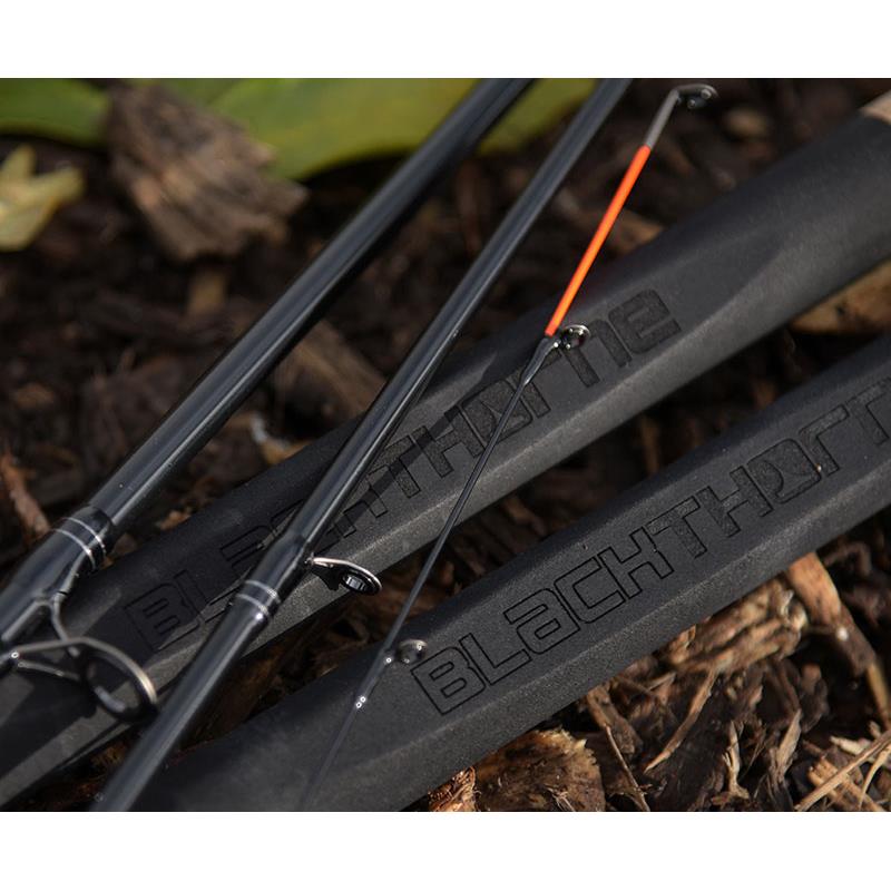 Wędki Blackthorne Pro N Feeders Medium świetnie nadają się do dalekich rzutów i są przy tym bardzo uniwersalne. Wyposażone są w 3 węglowe szczytówki rozmiaru M (średnica na ich końcu 2,8mm), które zapewniają dużą czułość, umożliwiając bardzo łatwe wykrywanie nawet najmniejszych brań. Ich blank jest podzielony na trzy równe części (szczytówka wliczona), co ułatwia transport. Rękojeść wykonana jest z korka i pianki, a jej długość jest dopasowana do długości wędki. Warto zauważyć, że część nasady jest spłaszczona, co zwiększa komfort podparcia przedramienia podczas łowienia. Dostępne w 3,60 m z mocą wyrzutu 20-50 g oraz w 3,75 m z mocą wyrzutu 30-60 g.