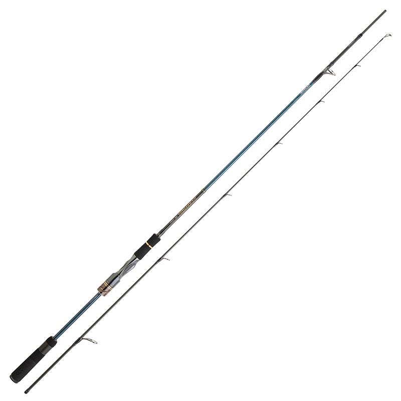 Cechy : • Blank węglowy SVF (Super-high Volume Fiber) Nanoplus wyposażony w technologię X-45 Full Shield • Złącze V-Joint Alpha typu spigot • Przelotki AGS (Air Guide System) z karbonu oraz przelotki końcowe Fuji Sic typu LG • Ergonomiczny uchwyt kołowrotka Fuji TVS z pierścieniem zaciskowym • Uchwyt EVA o bardzo wysokiej gęstości, perforowany • Progresywna akcja szczytowa • Składany zaczep na przynętę Fuji