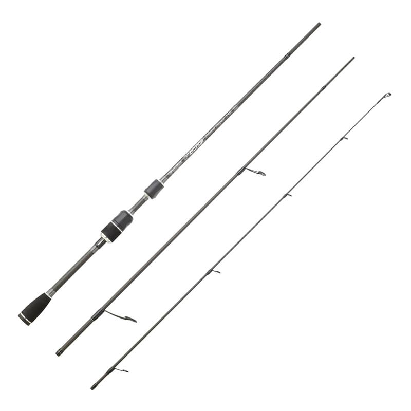 Cechy : •Pstrąg i małe drapieżniki łowione woblerami • Wieloczłonowa o niewielkich wymiarach po złożeniu • Ergonomiczny uchwyt kołowrotka typu szkieletowego • Podwyższone przelotki przeciwplączące • Stały zaczep na przynętę • Włókno węglowe HR