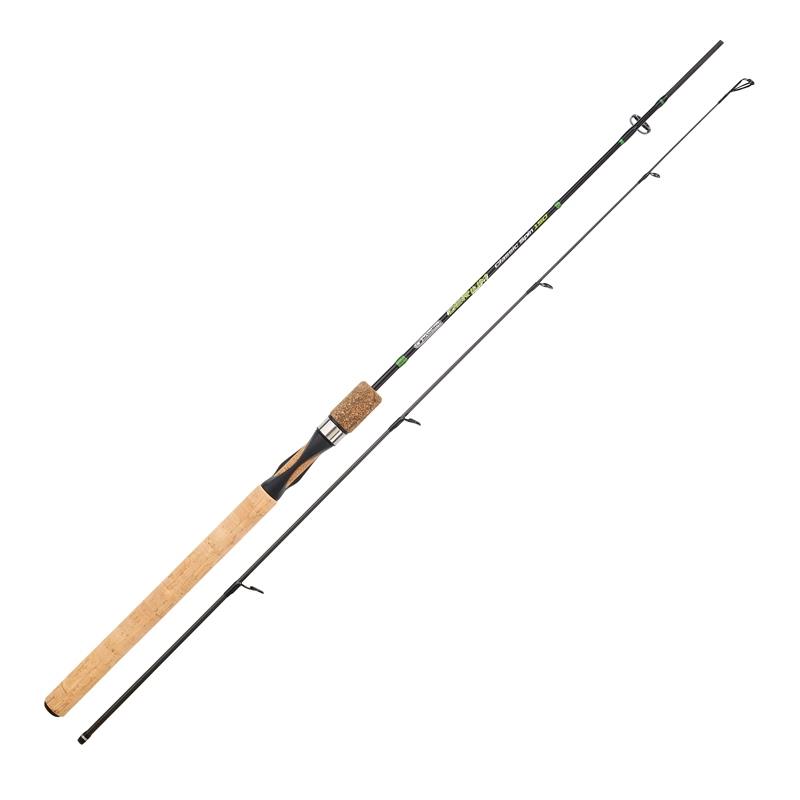 Charakterystyka : •Pstrąg i małe drapieżniki łowione na rzut • Uchwyt i część gwintowana z korka • Rurkowy ergonomiczny uchwyt kołowrotka • Przelotki Ti OX • Stałe mocowanie przynęty • karbon HR