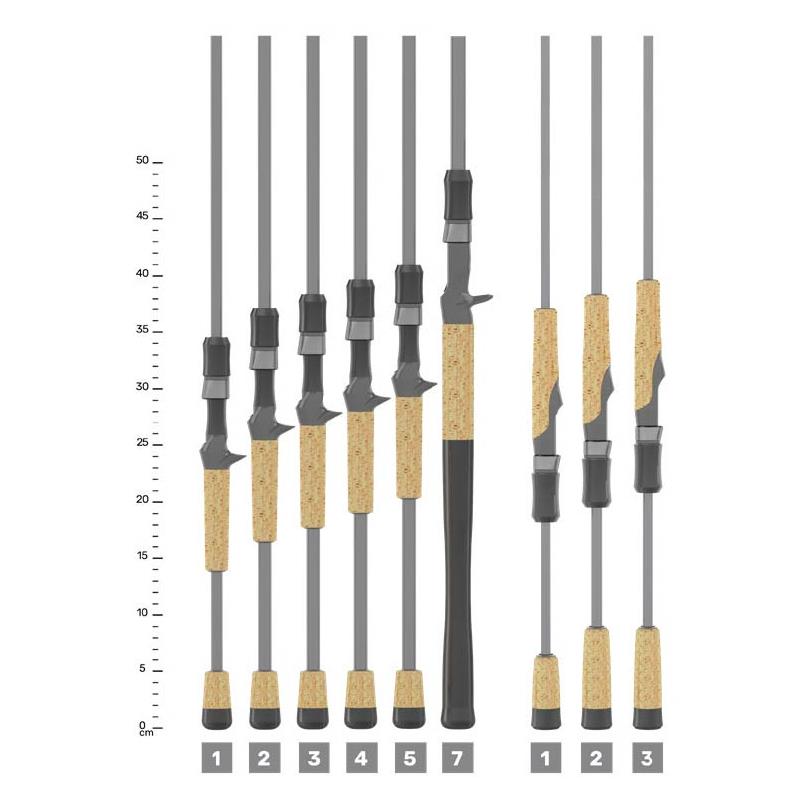 Cechy : • Hybrydowe włókno węglowe super wysokiego modułu SCIII+ • Przelotki Fuji Concept « O » z opasującą konstrukcją • Uchwyt kołowrotka Fuji SK2 (Casting) • Tuleja uchwytu kołowrotka Fuji KDPS zintegrowana z rękojeścią • Korek najwyższej klasy • Specyficzne zaczepienie przynęt w zależności od techniki • Pojedyncza warstwa żywicy o powolnym schnięciu na blanku • Podwójna warstwa lakieru Flex Coat na wiązaniach przelotek • Zaprojektowane i wykonane ręcznie w Park Falls, USA