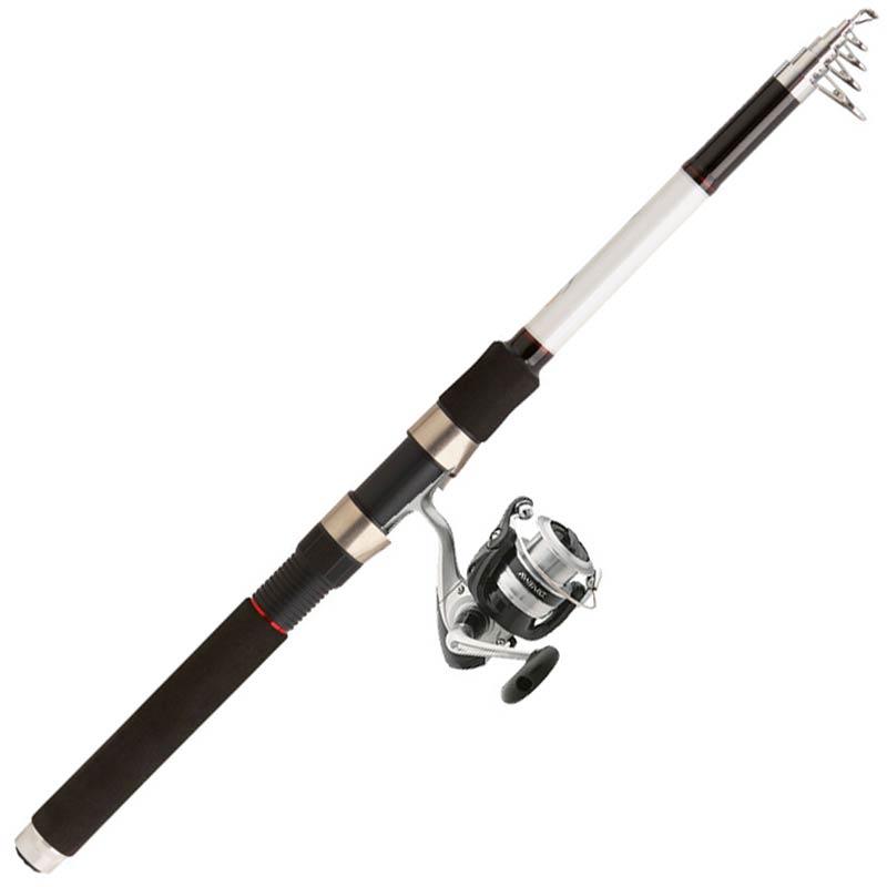 Uniwersalne zestawy do wyrzutu. Wędka Sweepfire, teleskopowa, z kompozytu. Pianka EVA o wysokiej gęstości. Kołowrotek DF, przedni hamulec, 1 łożysko, aluminiowa szpula i wyposażony w technologie Twist Buster, Gyro Spin, Digigear i ABS.