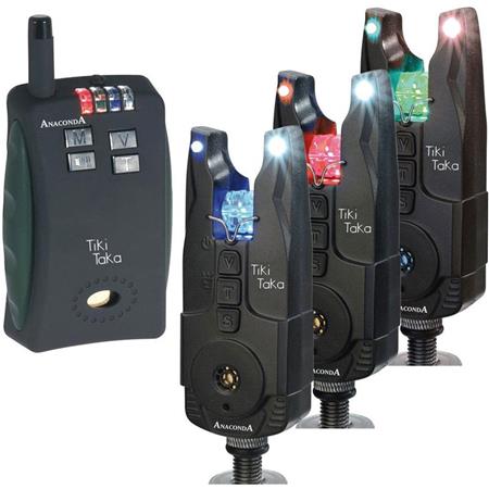 Cechy sygnalizatorów : • Zasięg 150 m w optymalnych warunkach • Łatwa obsługa dzięki technologii "Push-Button" • 5 poziomów regulacji głośności • Tryb cichy • 7 różnych tonów • 4 poziomy czułości • Wskaźnik brań za pomocą ultrajasnych diod LED • Obudowa "Soft Touch" wodoodporna i odporna na wstrząsy • Zasilane 2 bateriami 1,5V AAA (brak w zestawie) • Gniazdo Jack 2,5 mm