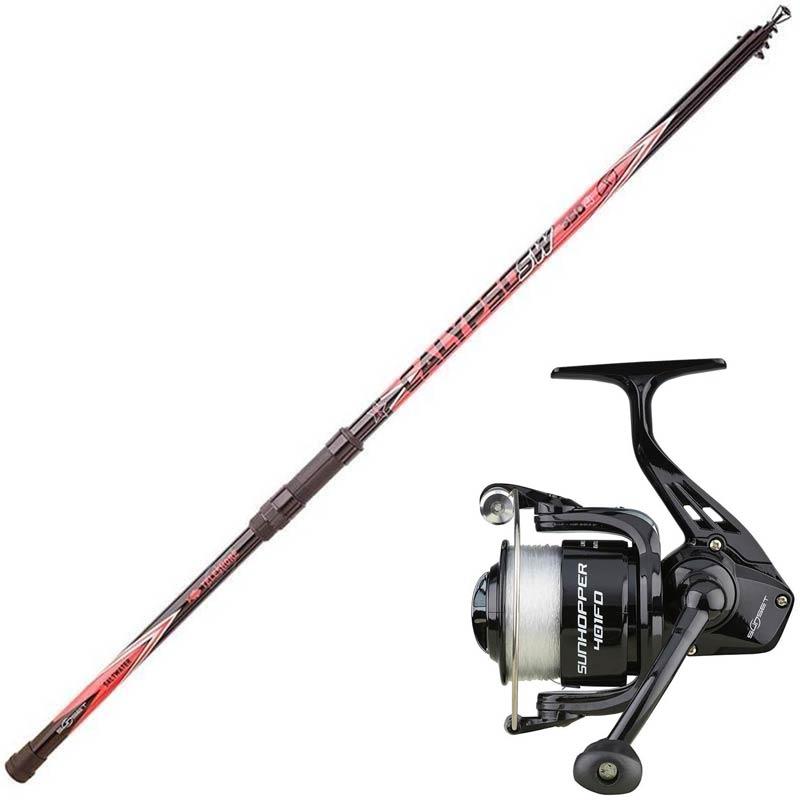 • Specjalny zestaw do połowów z brzegu • Wędka z włókna szklanego • Kołowrotek dostarczany z żyłką • Idealny do połowów na grunt i na spławik