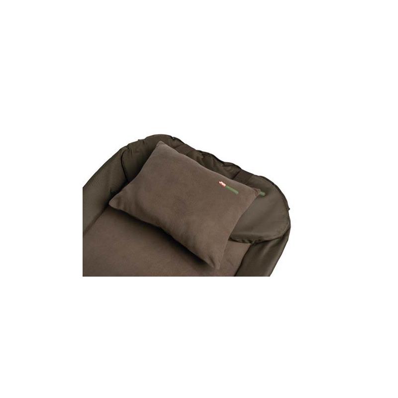 A almofada DEFENDER é uma almofada muito confortável. A parte superior é em polar e está bem acolchoada com material sintético com alta capacidade de memória. 2 cintas (com velcro) estão ligadas à almofada para que esta possa ser fixada na bedchair.