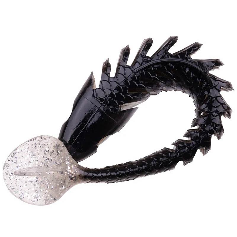 As costelas inclinadas e profundamente cortadas permitem melhorar a aerodinâmica e reduzir significativamente o peso. Além disso, a mobilidade é mantida e a isca dobra-se facilmente na boca do predador.