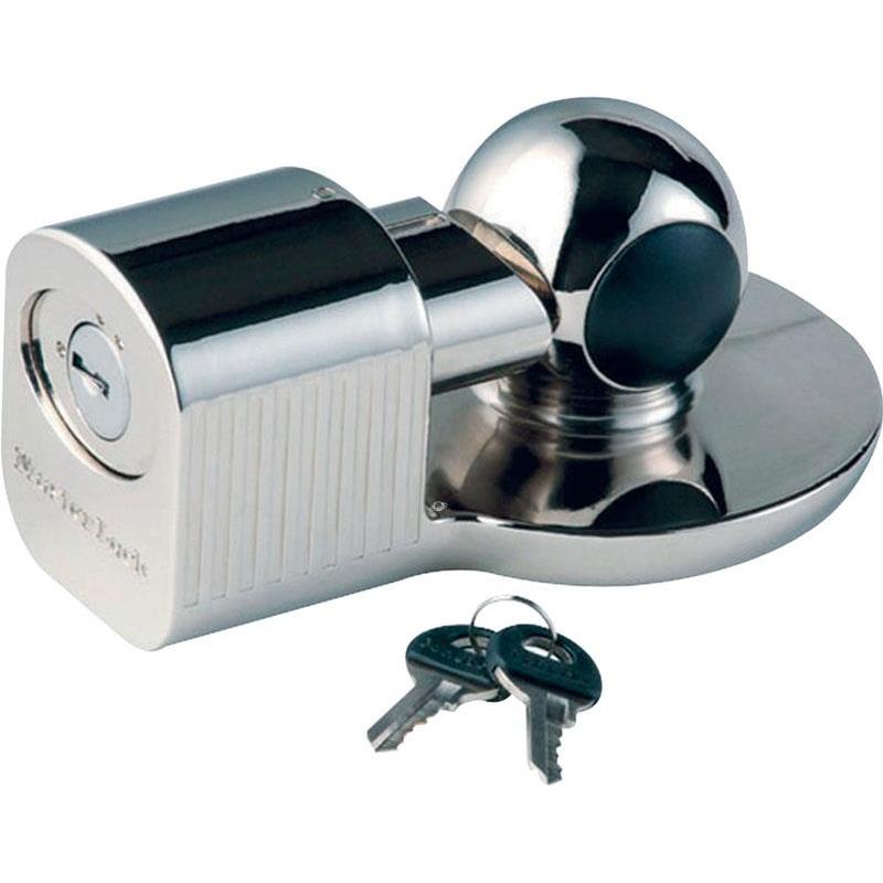 Monta-se simplesmente no lugar da bola de reboque do veículo e protege contra roubo durante o estacionamento do reboque.