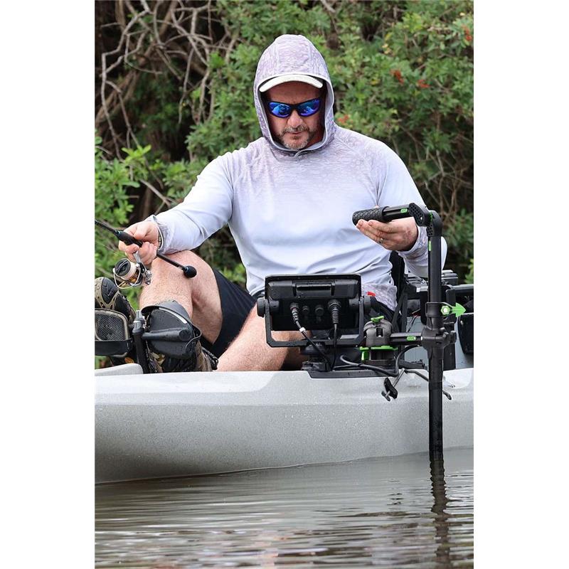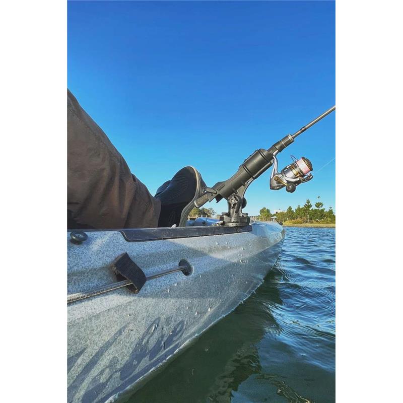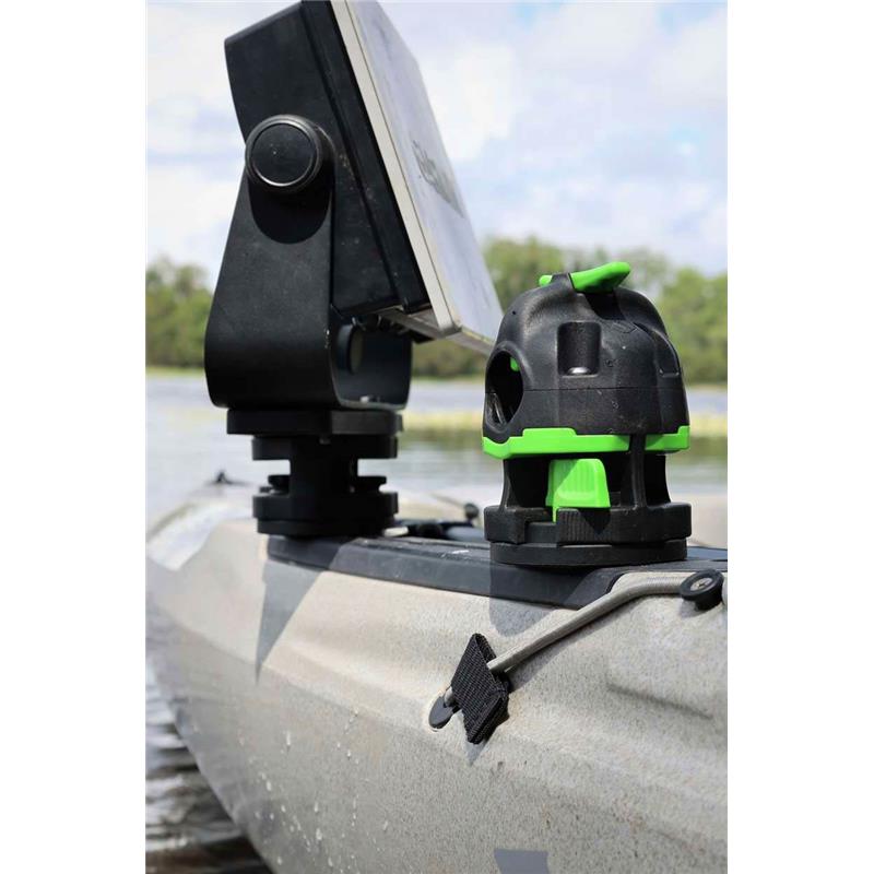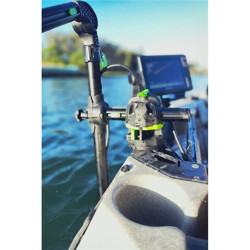Compatível com o HEXX Live Pole 60 e Live Pole 30, o suporte para localizador de peixes HEXX, a plataforma rotativa HEXX e o suporte para cana HEXX.